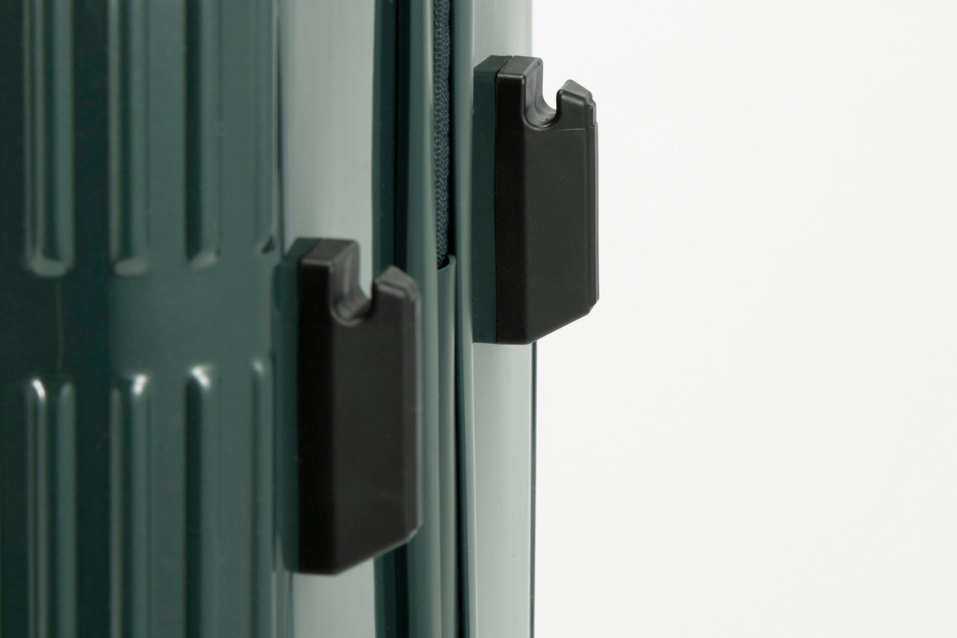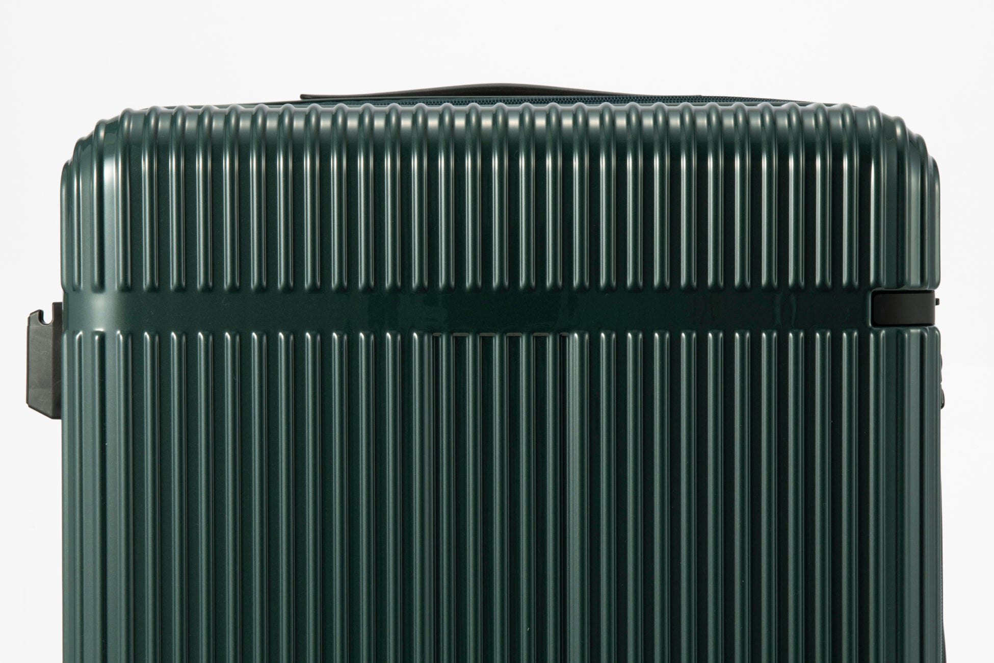 縦に入ったシャープなリブ(表面の凹凸)デザインが、スーツケースに強度を与えます。