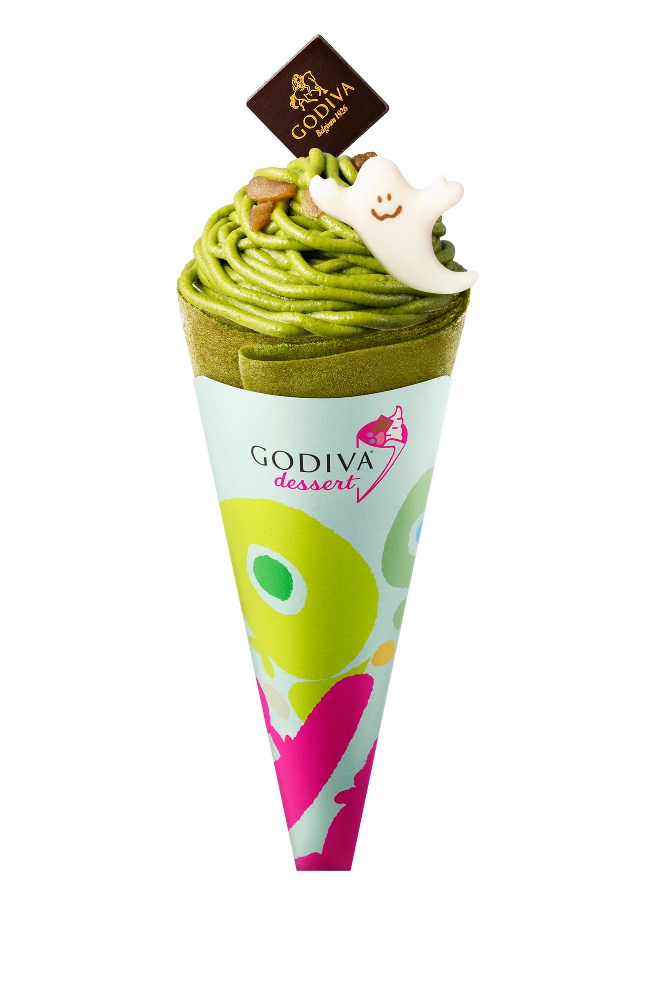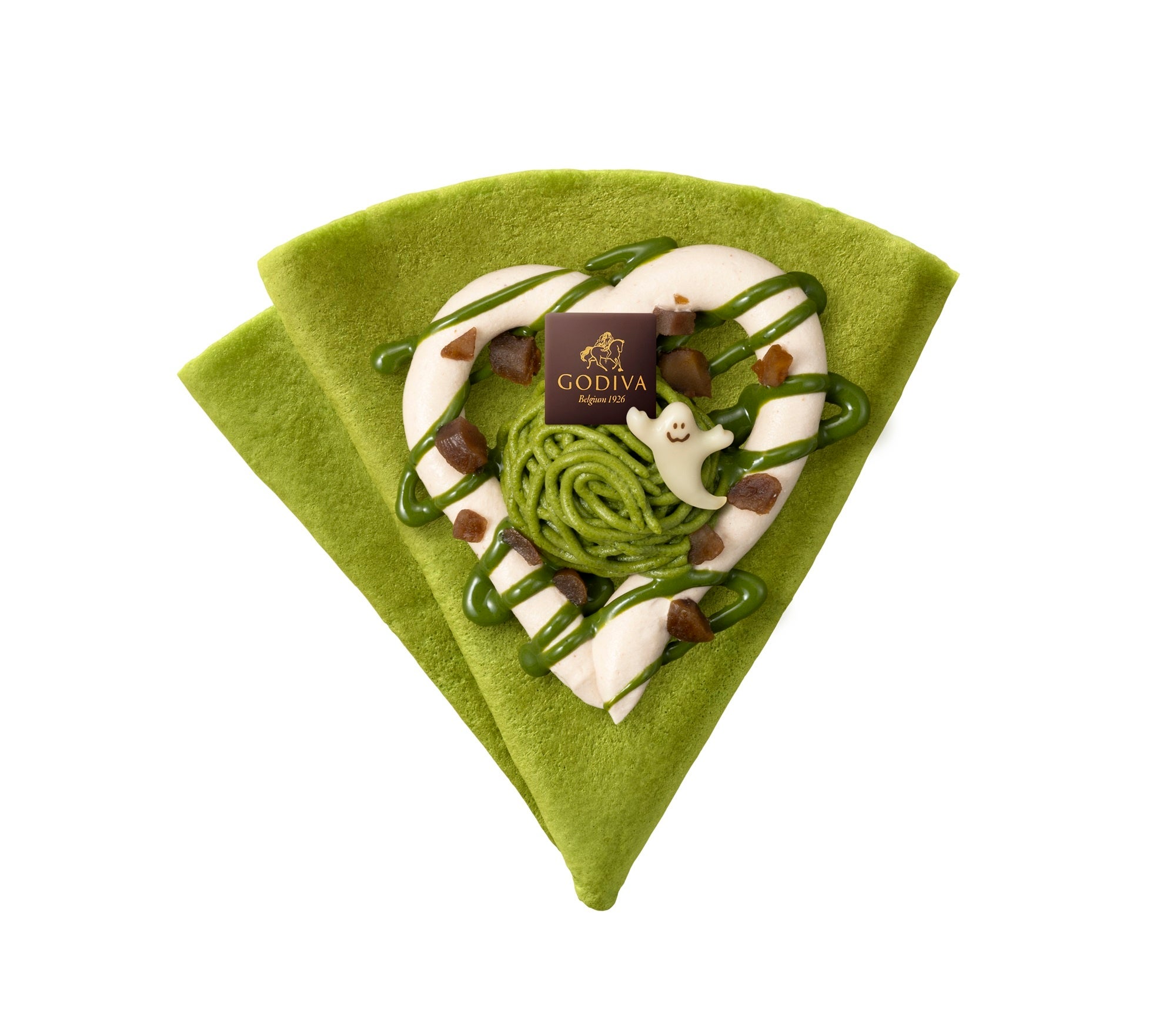 GODIVA dessertからモンブラン風の季節限定クレープ発売!10月中はハロウィン仕様のゴーストチョコレートをトッピング!「クレープ 抹茶モンブラン」