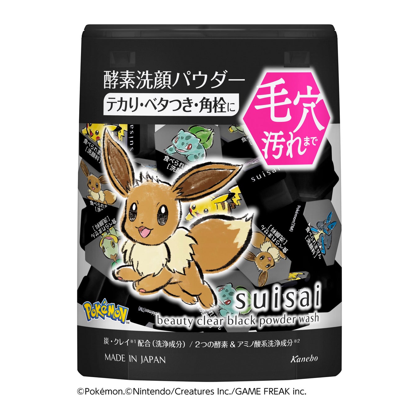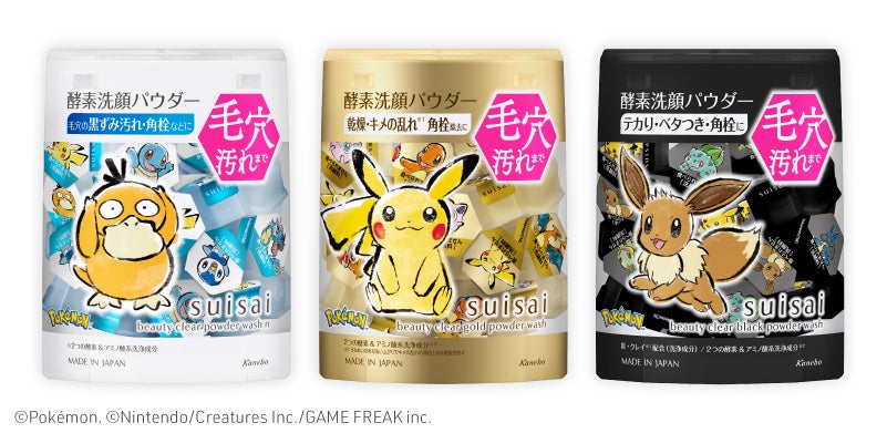 suisai初のポケモンデザイン!10年連続売上No.1※1シリーズの酵素※2洗顔パウダー「スイサイ ビューティクリア パウダーウォッシュ」から“白”・“金”・“黒” 3種のポケモンデザインが登場!