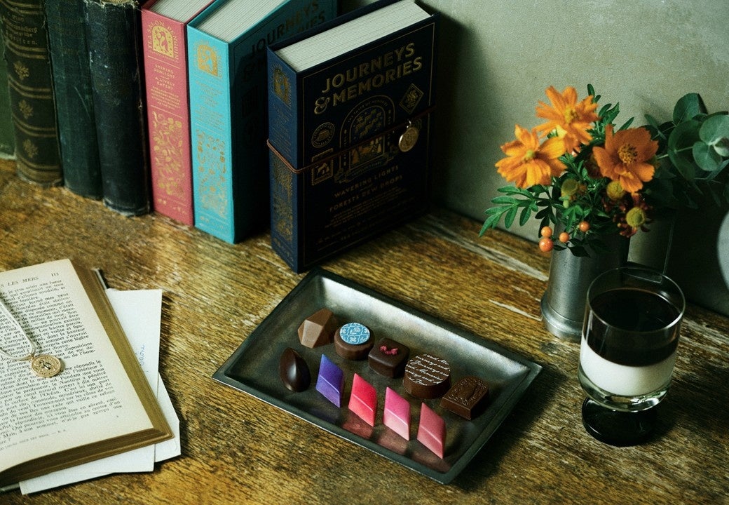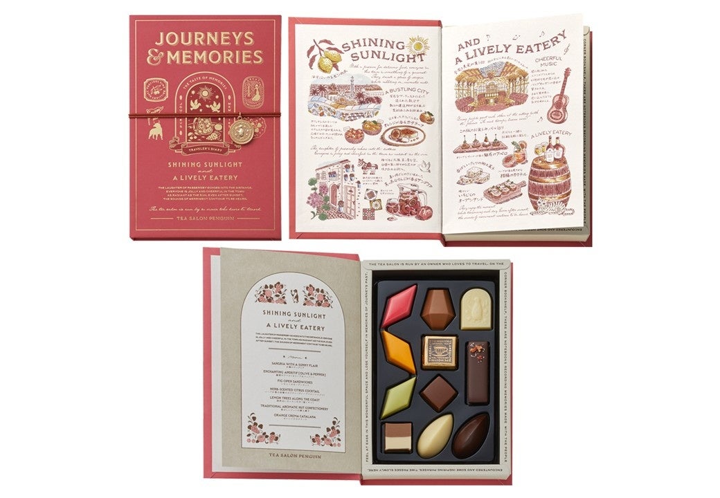 「旅の手記」をイメージしたブック型ボックスに店主が旅先で見た風景や出会った味わいをチョコレートにして詰め合わせました。ボックスを開くと、それぞれの旅の物語が素敵なイラストで描かれています。2026年は、新たな3つのストーリーをご用意いたしました。