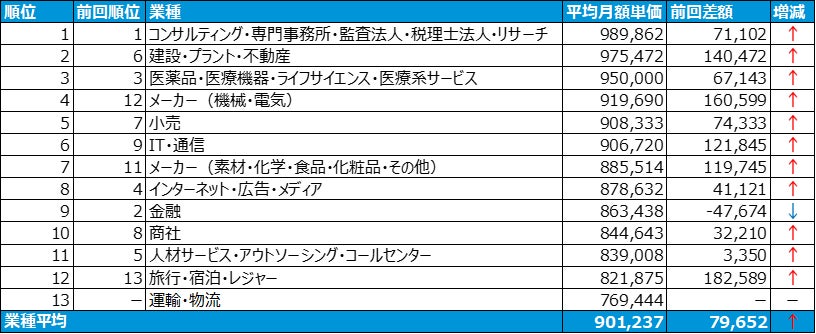 「建設・プラント・不動産」「メーカー(機械・電気)」が順位を伸ばす~