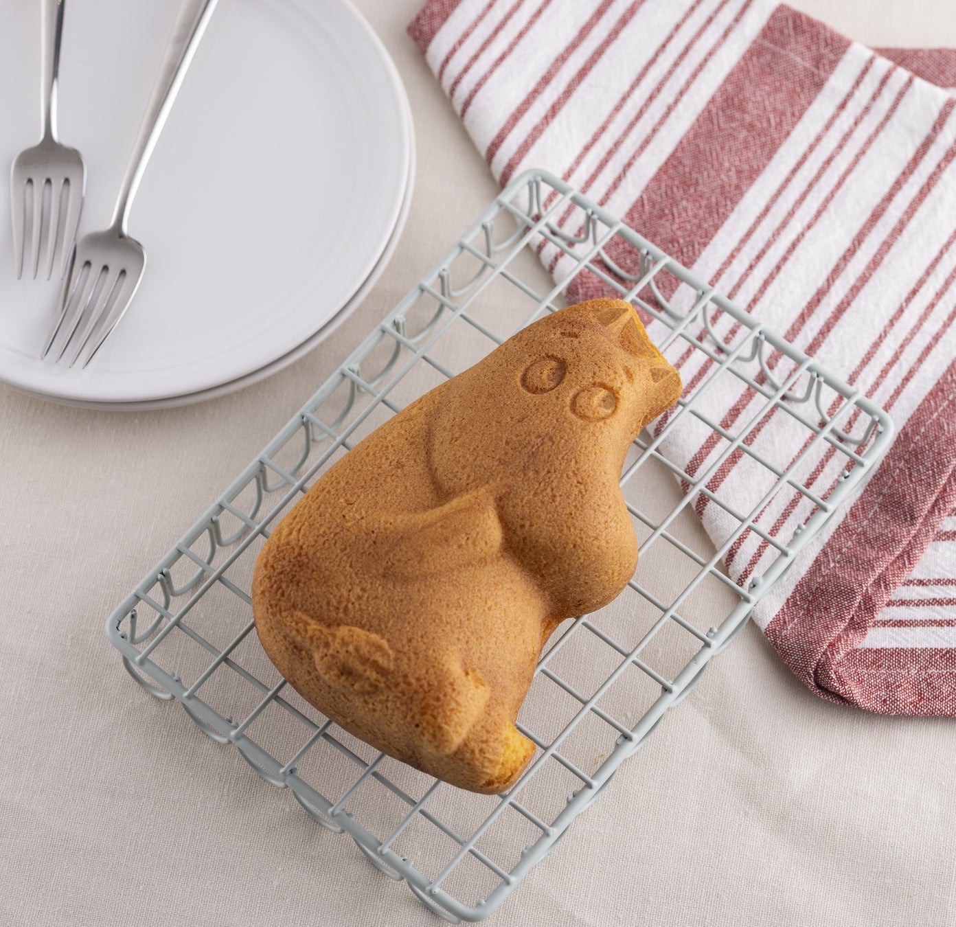 ぷっくりとしたムーミン型のかわいいパウンドケーキが焼ける金属型。目や耳部分の模様は凹形状に焼き上がるので、チョコペンなどでのデコレーションも簡単。