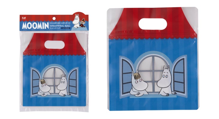 ムーミンやしきでくつろぐムーミンたちのデザイン。窓部分が透明なので、お菓子を入れるとまるでムーミンたちと一緒にムーミンやしきにいるように見えます。