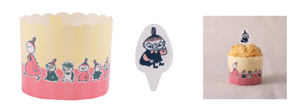 紙製のマフィンカップとケーキピックのセット(3枚入り)。生地を入れて焼き、セットのケーキピックを刺すだけでかわいいムーミンマフィンのできあがり!マフィンカップは油が染み出しにくい内面PETコーティング。