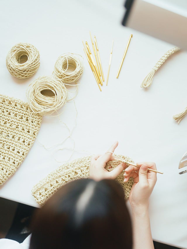 従来とは異なる素材を使い、丁寧にかぎ針で一つひとつ手編みしました。