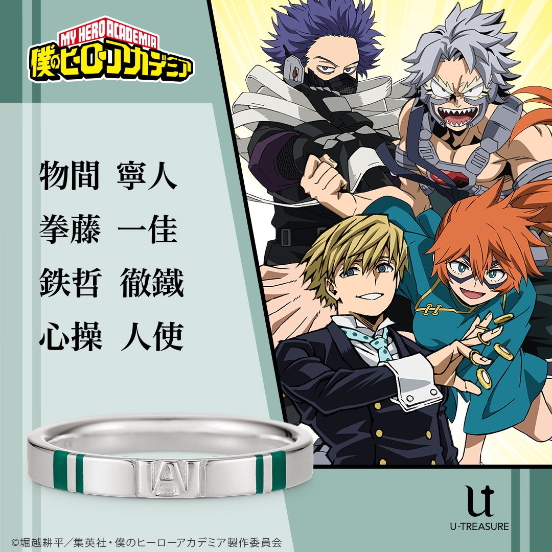 株式会社ユートレジャー(本社:東京都新宿区、代表取締役:伊藤 崇史)は、TVアニメ『僕のヒーローアカデミア』(原作:堀越耕平(集英社「週刊少年ジャンプ」連載中)とのコラボレーションアイテム「雄英生ネームリング」(指輪)」27種類を2024年8月7日(水)~9月11日(水)の期間限定で予約受け付けを行います。