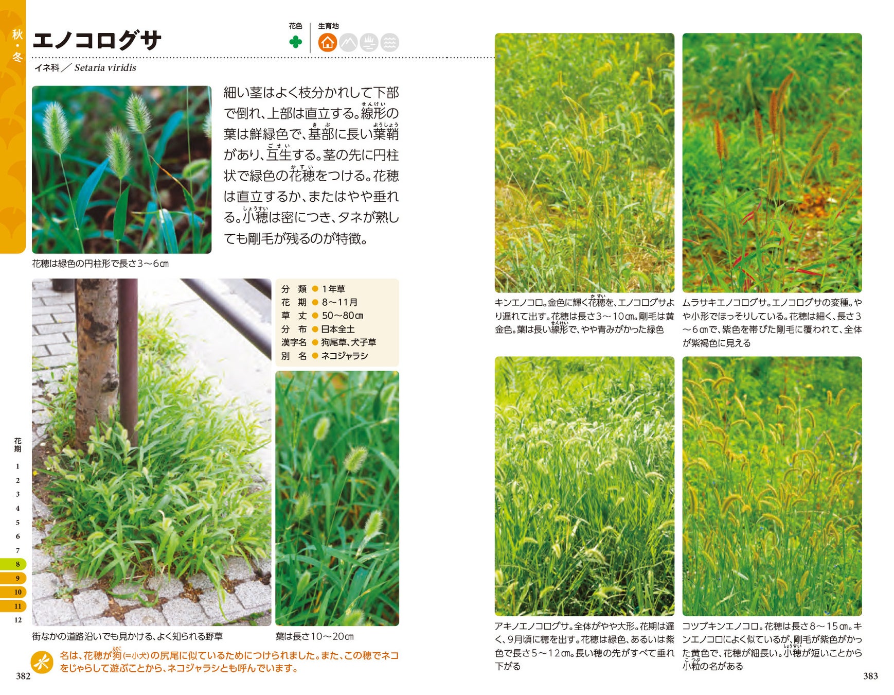 ひっそりと野に咲いている美しい野草から、目立たない可憐な花まで、街で見かけるありとあらゆる野の花・野草382種を収録。