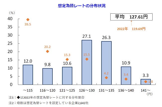 ※調査期間は2023年4月17日~30日、調査対象は全国2万7,663社で、有効回答企業数は1万1,108社(回答率40.2%)。分析対象は想定為替レートを設定している企業2,642社。なお、想定為替レートに関する調査は2017年以降、毎年実施し、今回で7回目