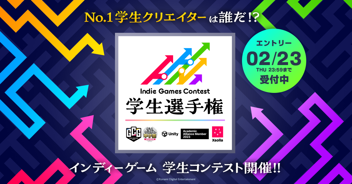 株式会社コナミデジタルエンタテインメントは、学生向けインディーゲームコンテスト「Indie Games Contest 学生選手権」の開催をお知らせします。