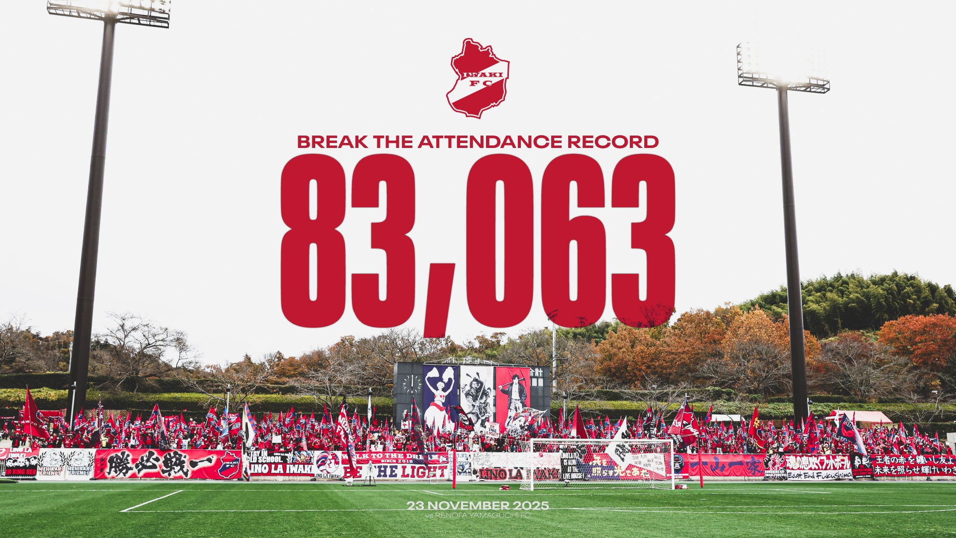 このたび、いわきFCは、本日行われました2025明治安田J2リーグ 第37節 レノファ山口FC戦において、5,013名のお客様にご来場いただき、年間入場者数が過去最多となる83,063名を記録いたしましたので、お知らせいたします。