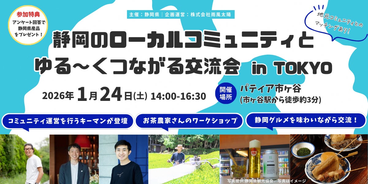 静岡キーマンと繋がれる大好評イベント「地域とゆる~くつながるミートアップセミナー」を今度は都内で対面開催――静岡グルメを味わいながらコミュニティ運営等を行うローカルキーマンと出会えるチャンスです