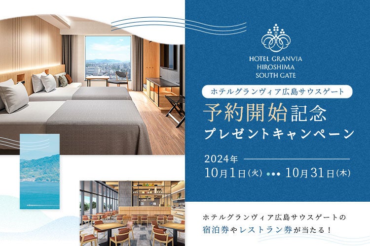 株式会社ジェイアール西日本ホテル開発(京都府京都市下京区、代表取締役社長 伊勢 正文)と株式会社ホテルグランヴィア広島(広島市南区、代表取締役社長 島田正義)は、JR西日本ホテルズ13施設目の新ホテル「ホテルグランヴィア広島サウスゲート」を2025年3月24日(月)に開業いたします。2024年10月1日(火)から宿泊予約受付を開始することにあわせて、期間中にJR西日本ホテルズの各施設をご利用いただいたお客様を対象としたプレゼントキャンペーンを実施いたします。