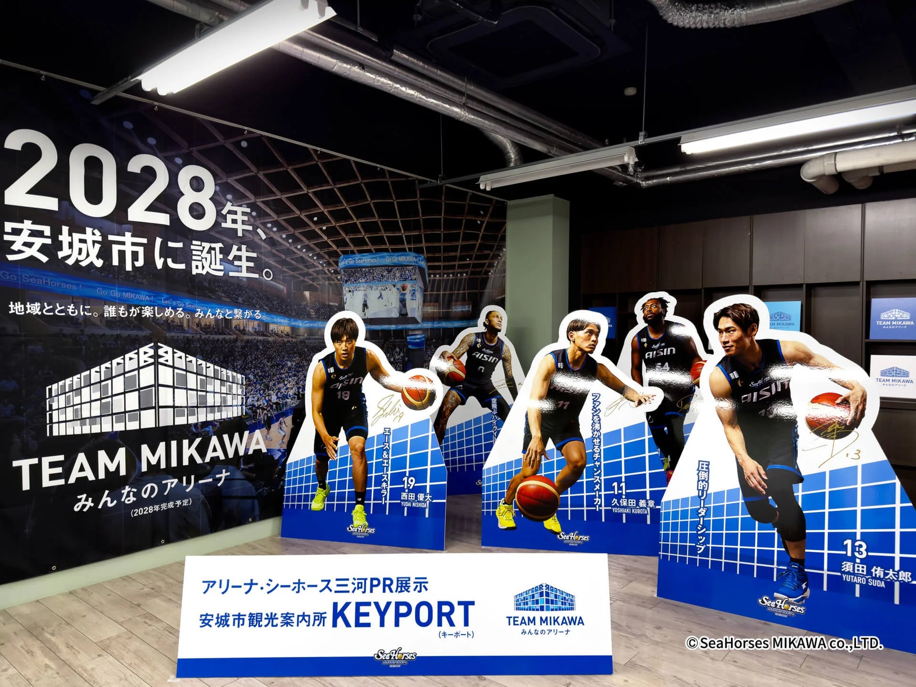 選手パネルや2028年に開業予定の三河安城交流拠点(アリーナ)を紹介するパネルやタペストリーの展示なども行っておりますので、ぜひ期間中は安城市観光案内所「KEYPORT」にお立ち寄りください!