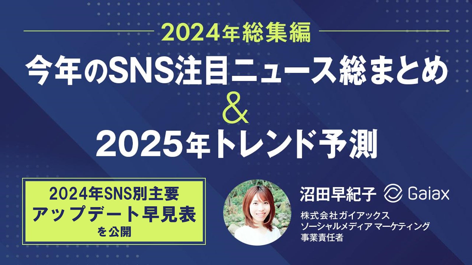 大手企業のSNSマーケティングを戦略から運用まで一気通貫で総合的に支援する株式会社ガイアックス(本社:東京都千代田区、代表執行役社長:上田 祐司、証券コード:3775、以下 ガイアックス)は、各SNSの特徴、この1年のアップデート、今後の方向性が分かる「2025年SNSトレンド予測&2024年総まとめ」を発表しました。あわせて、2024年SNS別の主要アップデート早見表を公開します。