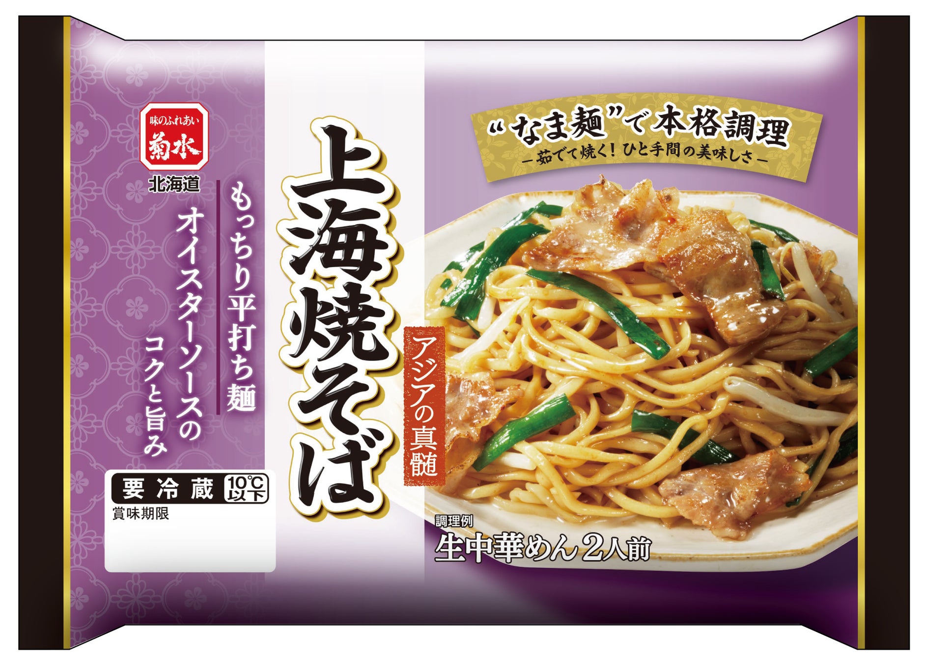 「上海焼そば2人前」は、なま麺をゆでてから焼いていただくことでもっちり食感になります。タレはオイスターソースをベースに、黒胡椒などの香辛料を効かせ香味オイルで香り高く仕上げています。
