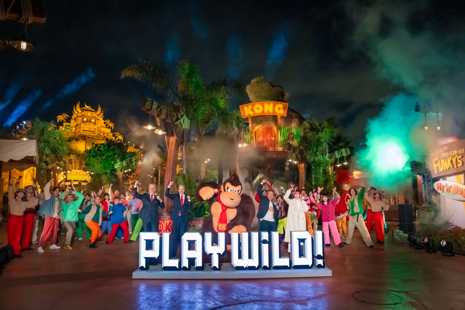 ユニバーサル・スタジオ・ジャパンは、大人気エリア『スーパー・ニンテンドー・ワールド』を拡張し、世界的に人気を誇る「ドンキーコング」をテーマにした新エリア『ドンキーコング・カントリー』を、明日12月11日(水)に世界で初めて※1オープンします。新エリア開業を翌日に控えた本日12月10日(火)、グランドオープン前夜祭を開催、壮大な開業日前日記念セレモニーで新エリア誕生を祝いました。