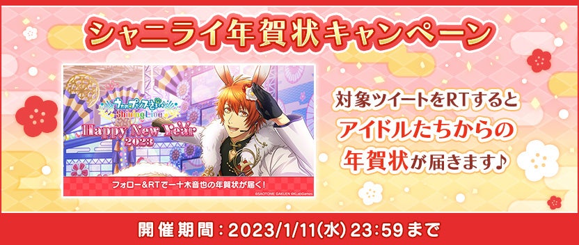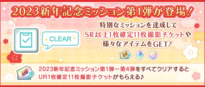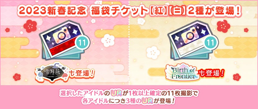 また、同時開催中の「2023新年キャンペーン」ではアイドルから年賀状が届くTwitterキャンペーンや、UR1枚確定11枚撮影チケットがもらえるミッションなど、様々なキャンペーンをお楽しみいただけます。