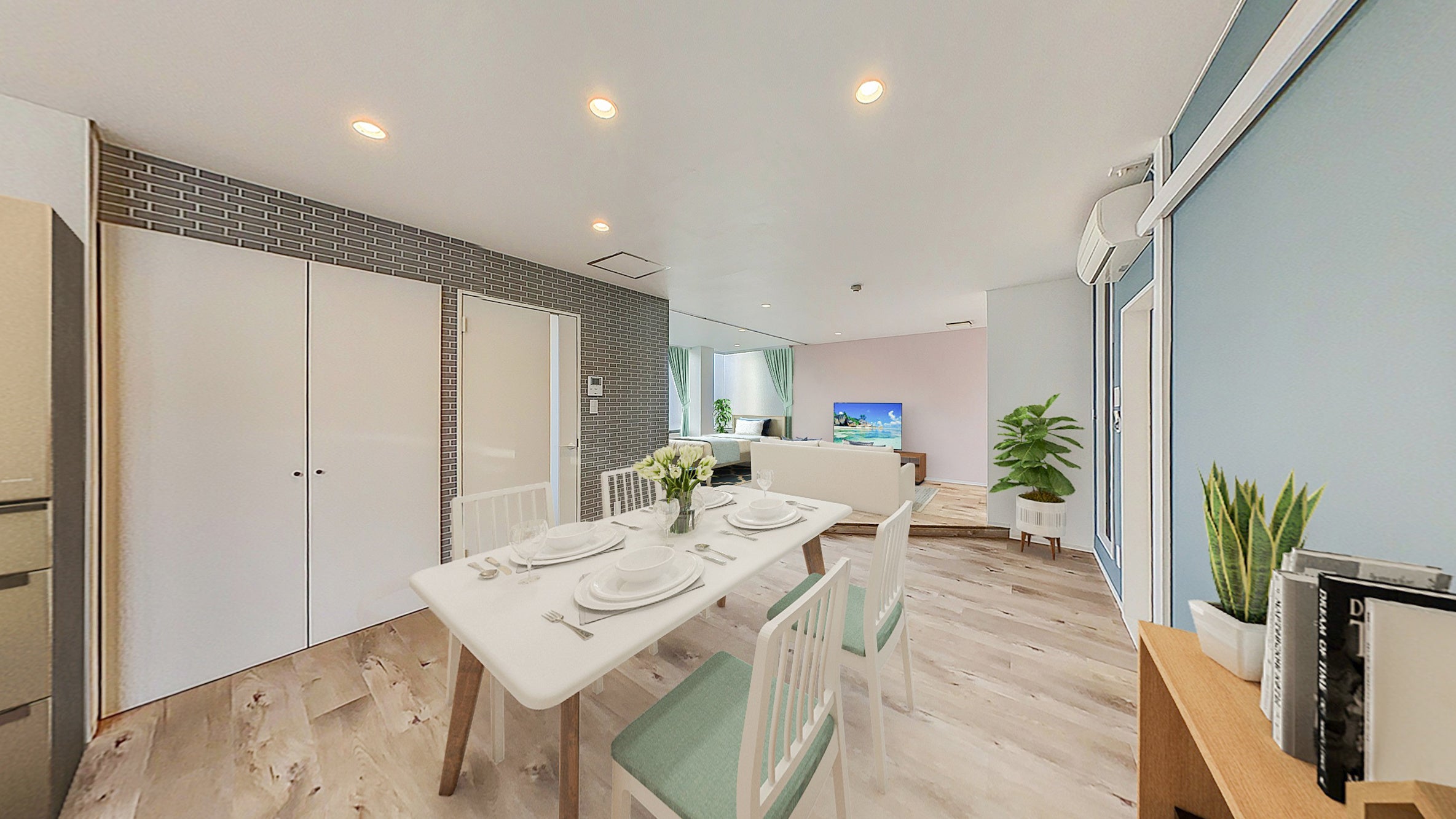 今回、 新たに「Renotta」に誕生した「SCANDINAVIAN LIFE VER BLUEGRAY」は、淡いピンクとブルーグレーの色使いが特徴のお部屋です。