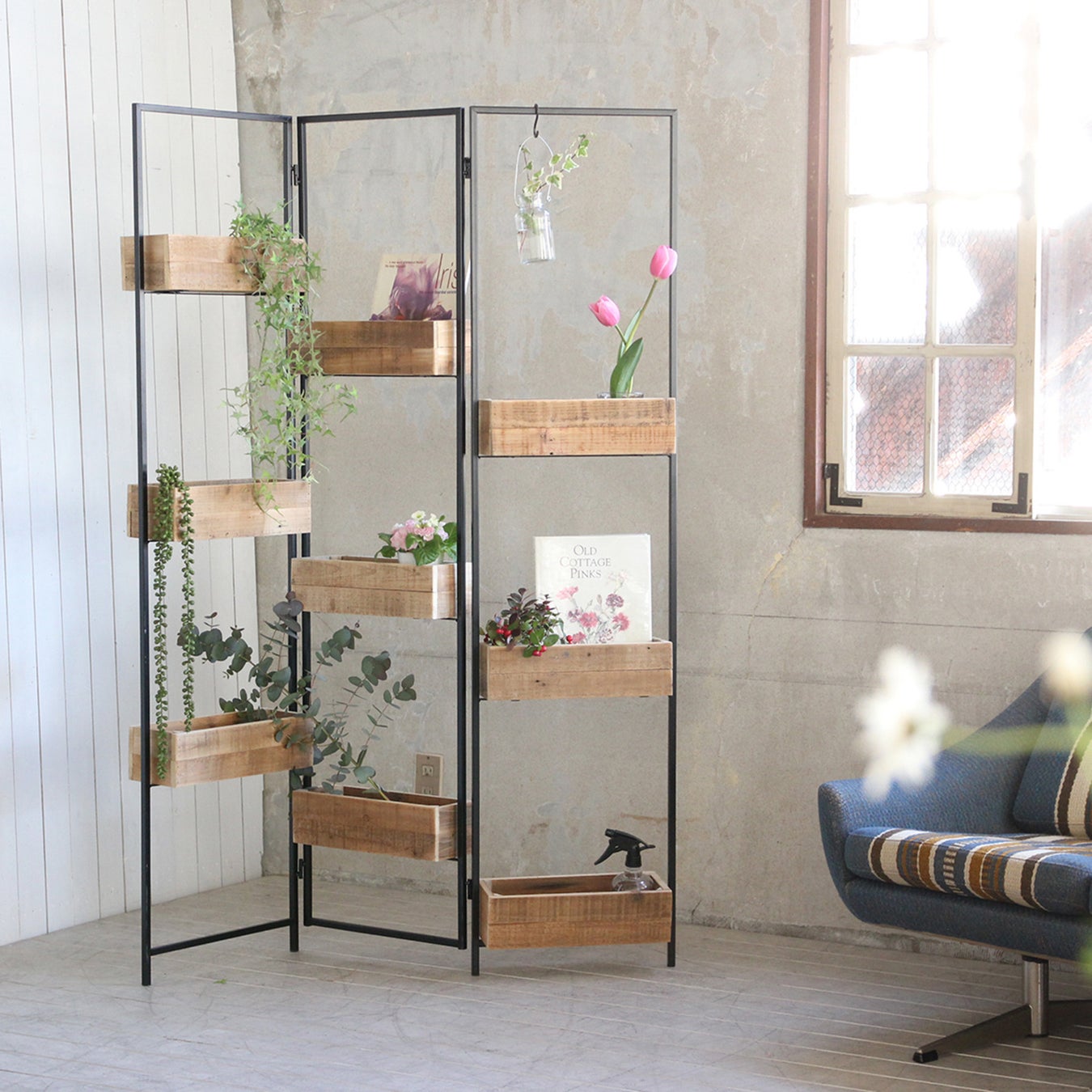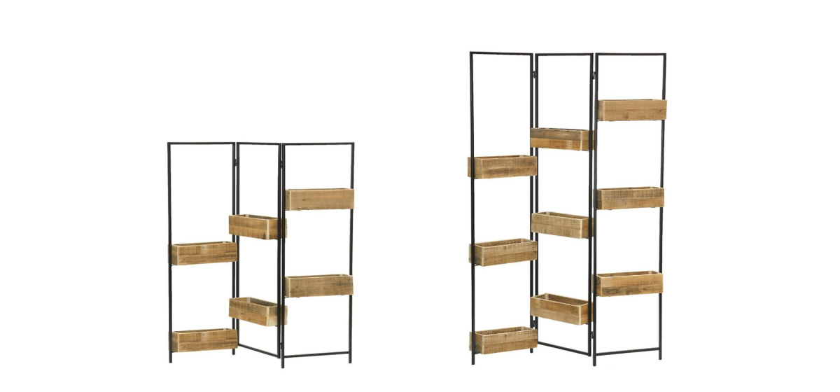 高さをつけて植物を飾りたいときに便利な折りたたみができるスタンドです。高さだけではなく奥行のあるディスプレイができ、飾りにくいコーナーでも置きやすく素敵です。
