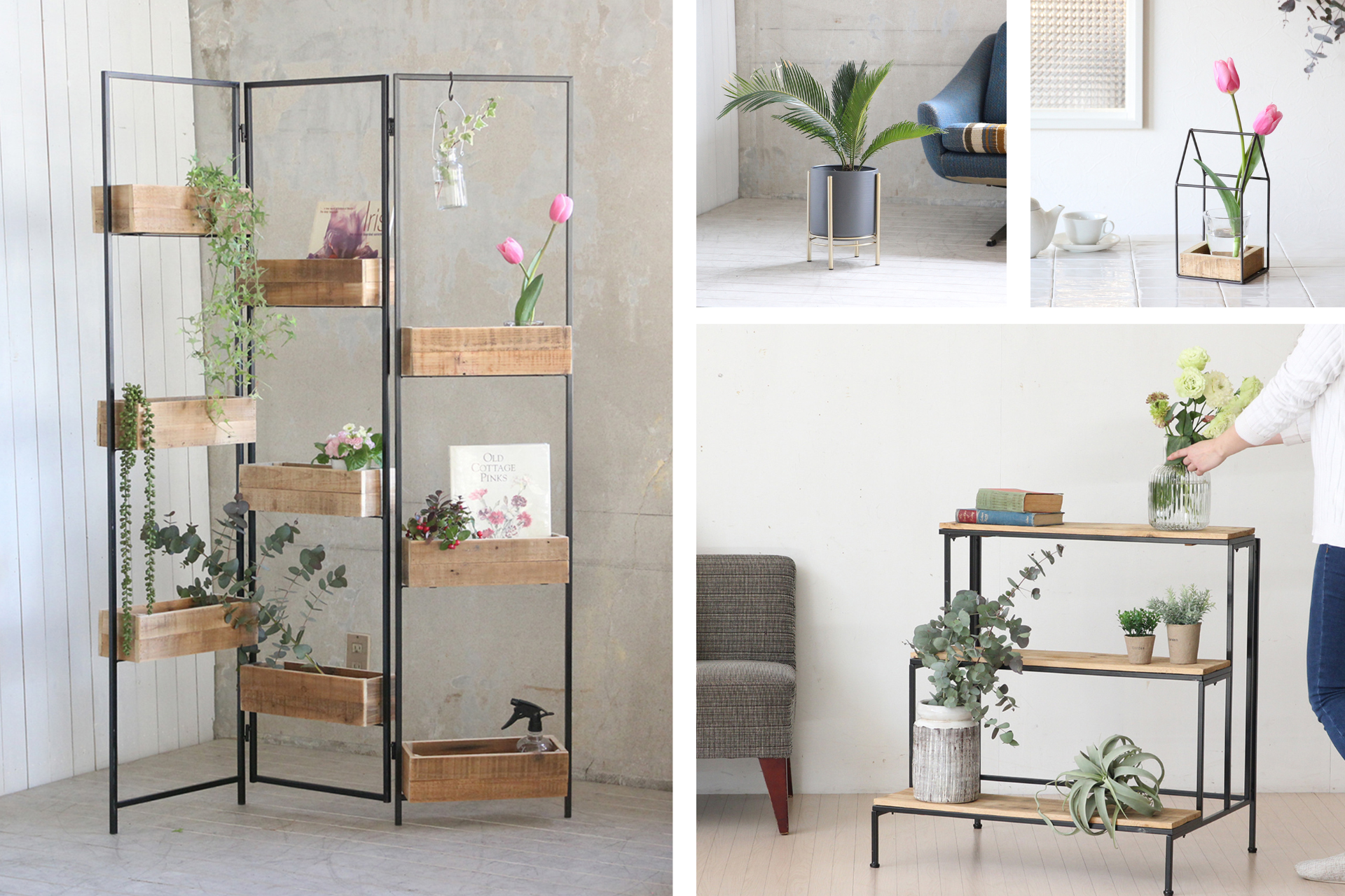 お部屋に緑のある生活は、空間をおしゃれに演出するだけでなく、心も豊かにしてくれます。そんな生活をより楽しむために、植物を素敵に見せる道具や家具が新登場。見た目だけでなく使い勝手にこだわった大小さまざまな豊富なラインアップとなります。春の新生活から植物を置き始めた初心者さんから、植物がだんだん増えて置き場に困ってきた熟練者さんまで、緑のある暮らし楽しむ方達におすすめの商品です。