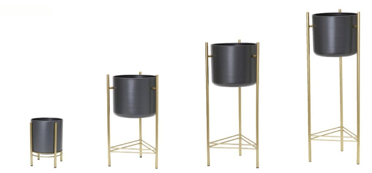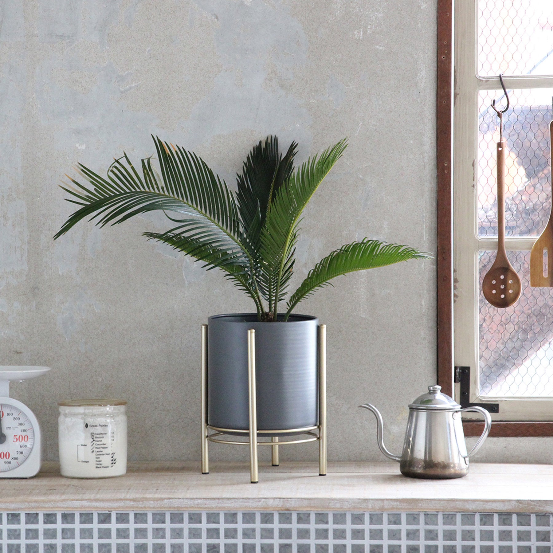 スタイリッシュなフォルムがかっこいいポット。グレーのポットとゴールドのアイアンとの色バランスが絶妙な雰囲気をだしています。