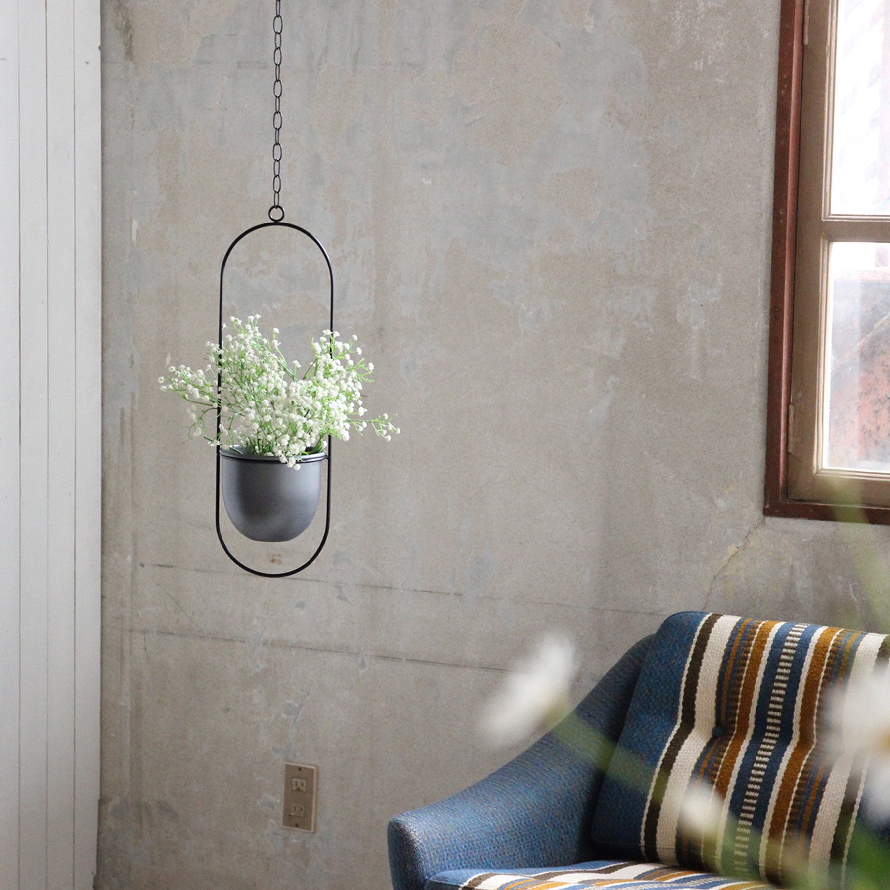 細めラインのアイアンの枠にポットが宙に浮いているようなデザイン。お部屋の空間をおしゃれに演出してくれます。