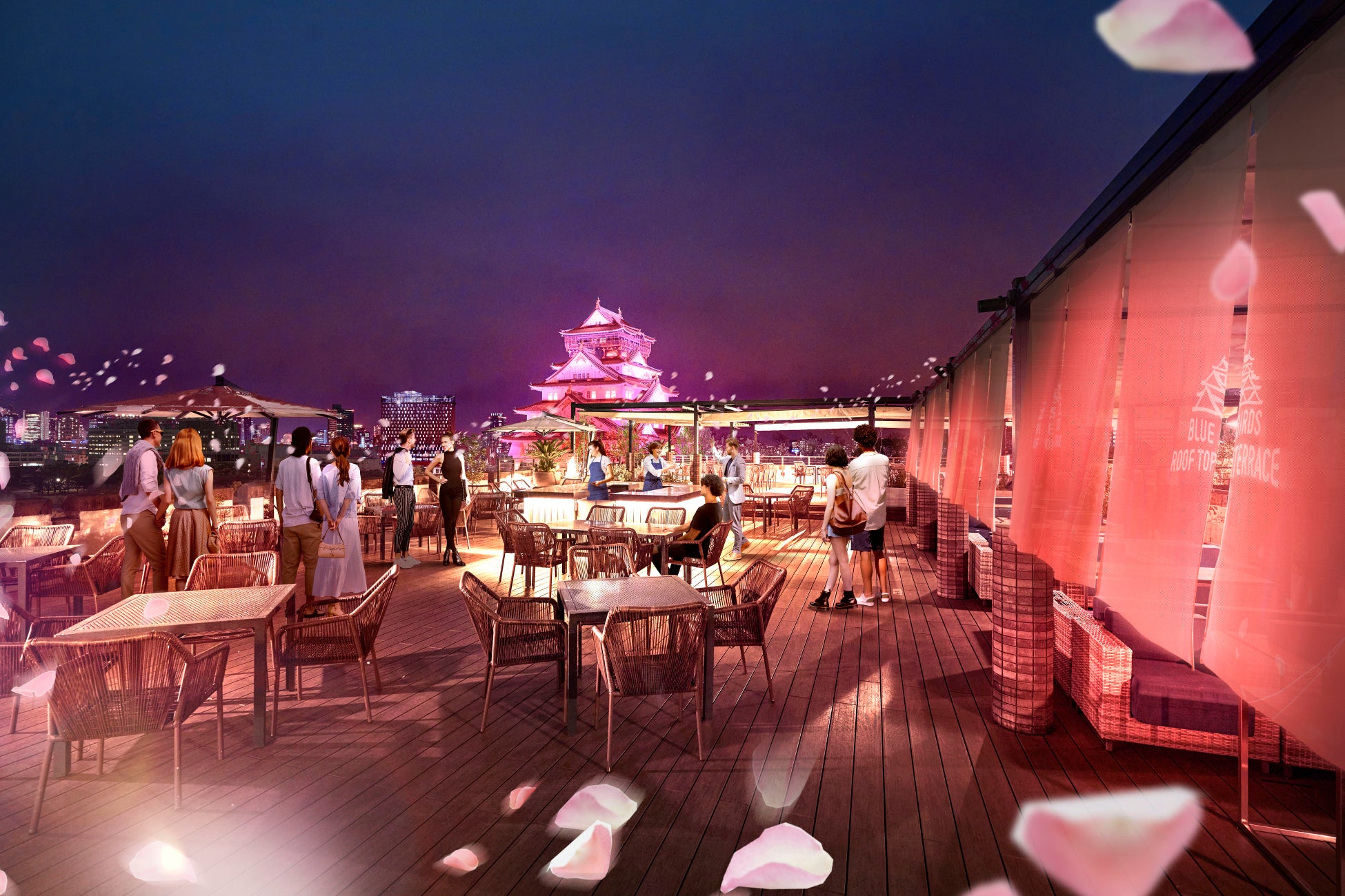 また、本日3月3日(月)より、屋上「BLUE BIRDS ROOF TOP TERRACE(ブルーバーズ ルーフトップテラス)」の新プラン「ジャパニーズバーベキュー」がスタート。大阪城天守閣を目の前に臨む、開放感あふれるルーフトップテラスで素材にこだわった日本ならではのバーベキュー体験をご提供いたします。
