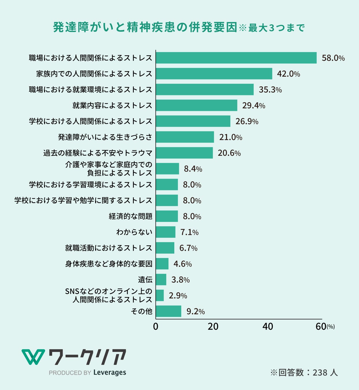 発達障がい者が精神疾患を発症した約6割は「職場の人間関係」が要因