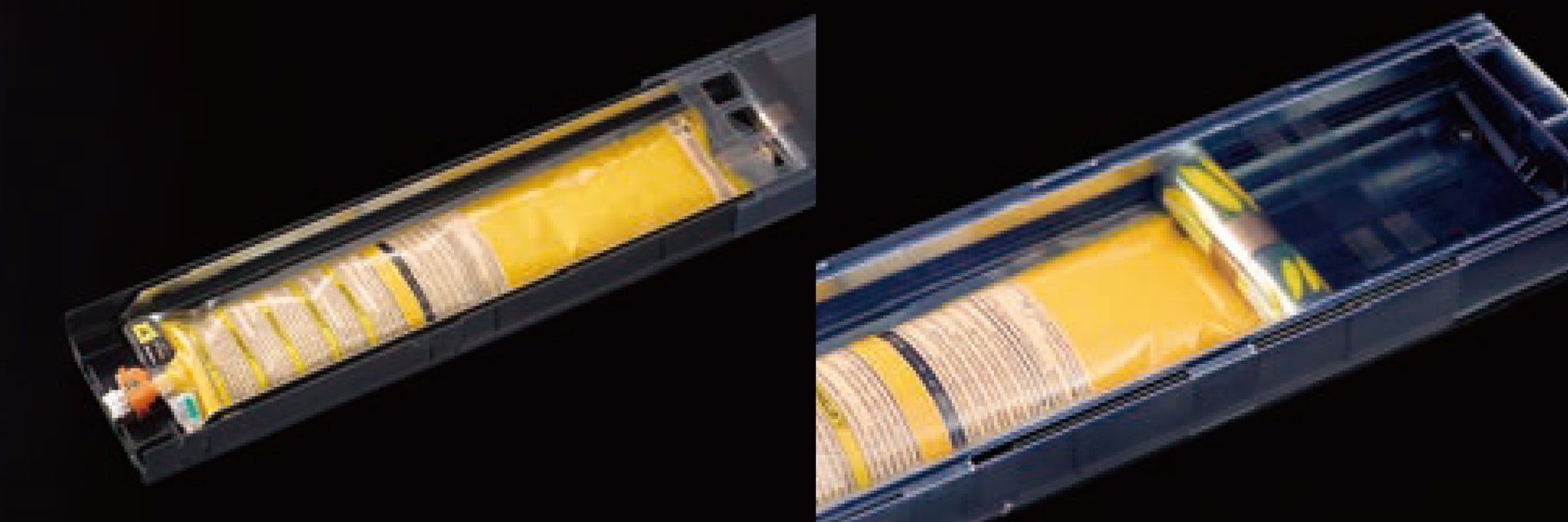 印刷はVOC(揮発性有機化合物)の排出量が少なく、人体に優しいラテックスインクを使用する。自社開発のインクは、人体や環境への配慮がなされていることを認証する環境ラベル「UL ECOLOGO ®」や「ULGREENGUARD Gold®」を取得【※】している。ラテックスプリンターは、ヒーターでラテックス(分散性ポリマー)を軟化させてから、硬化させることで耐久性塗膜を形成する。環境対応が求められる屋内の壁紙や、屋外で対候性が求められるカーラッピングなど幅広く対応できる。