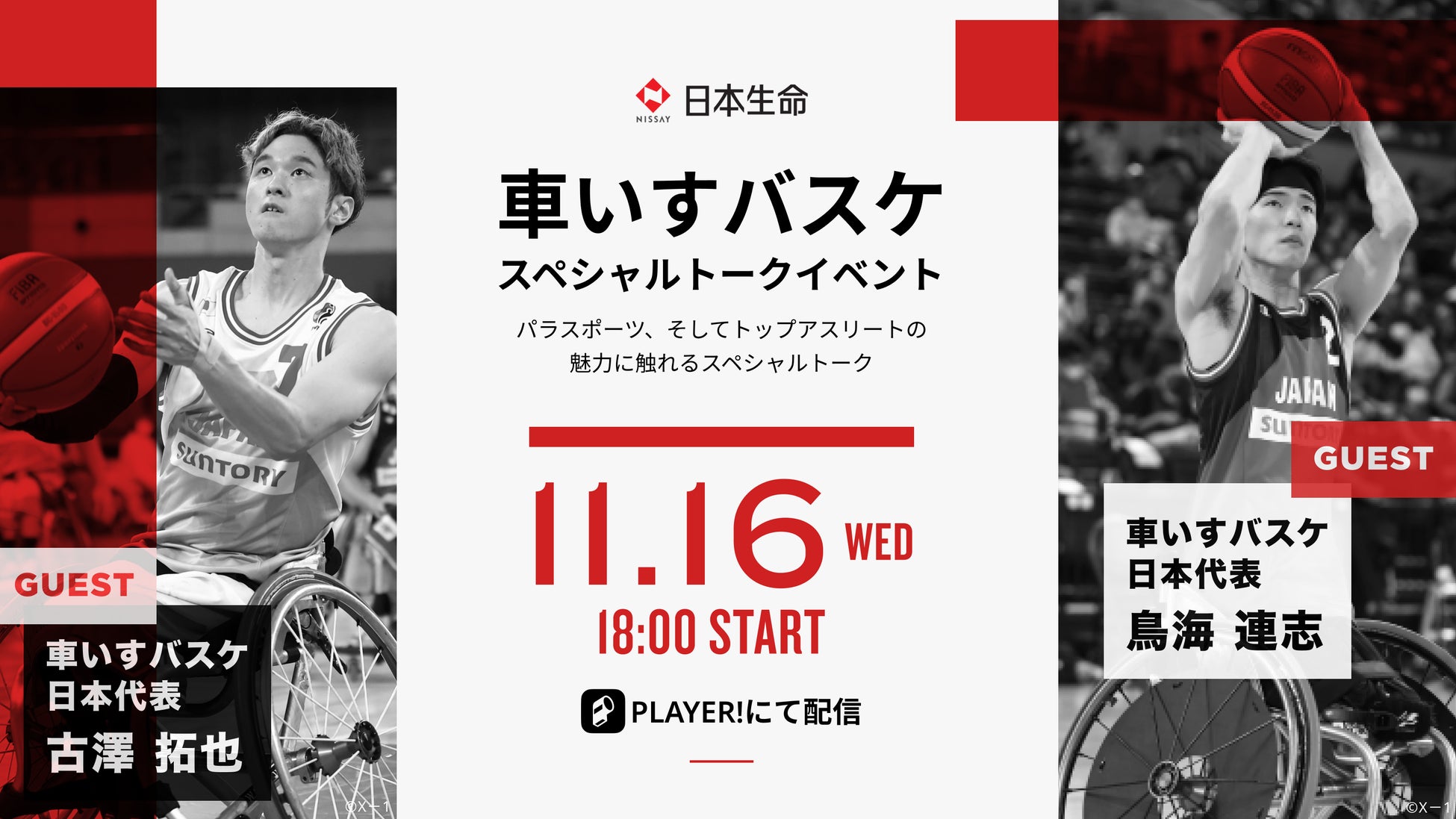 【日本生命 × Player!】11/16 車いすバスケ男子日本代表 鳥海連志選手、古澤拓也選手スペシャルトークイベント開催!
