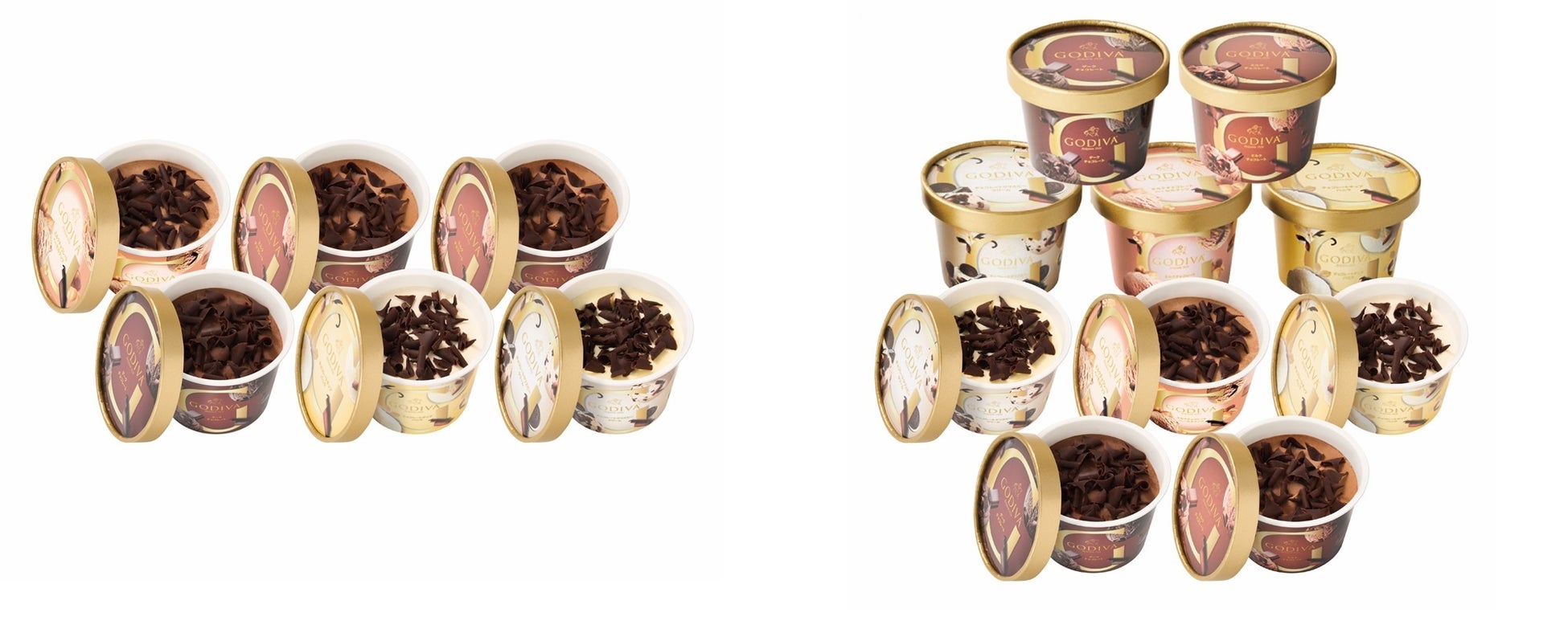 シェフが考案した本格的なレシピによる、定番フレーバーや季節限定フレーバーを詰め合わせ、ゴディバのプレミアムなチョコレートを様々なフレーバーのアイスクリームで味わえるセットとなっています。