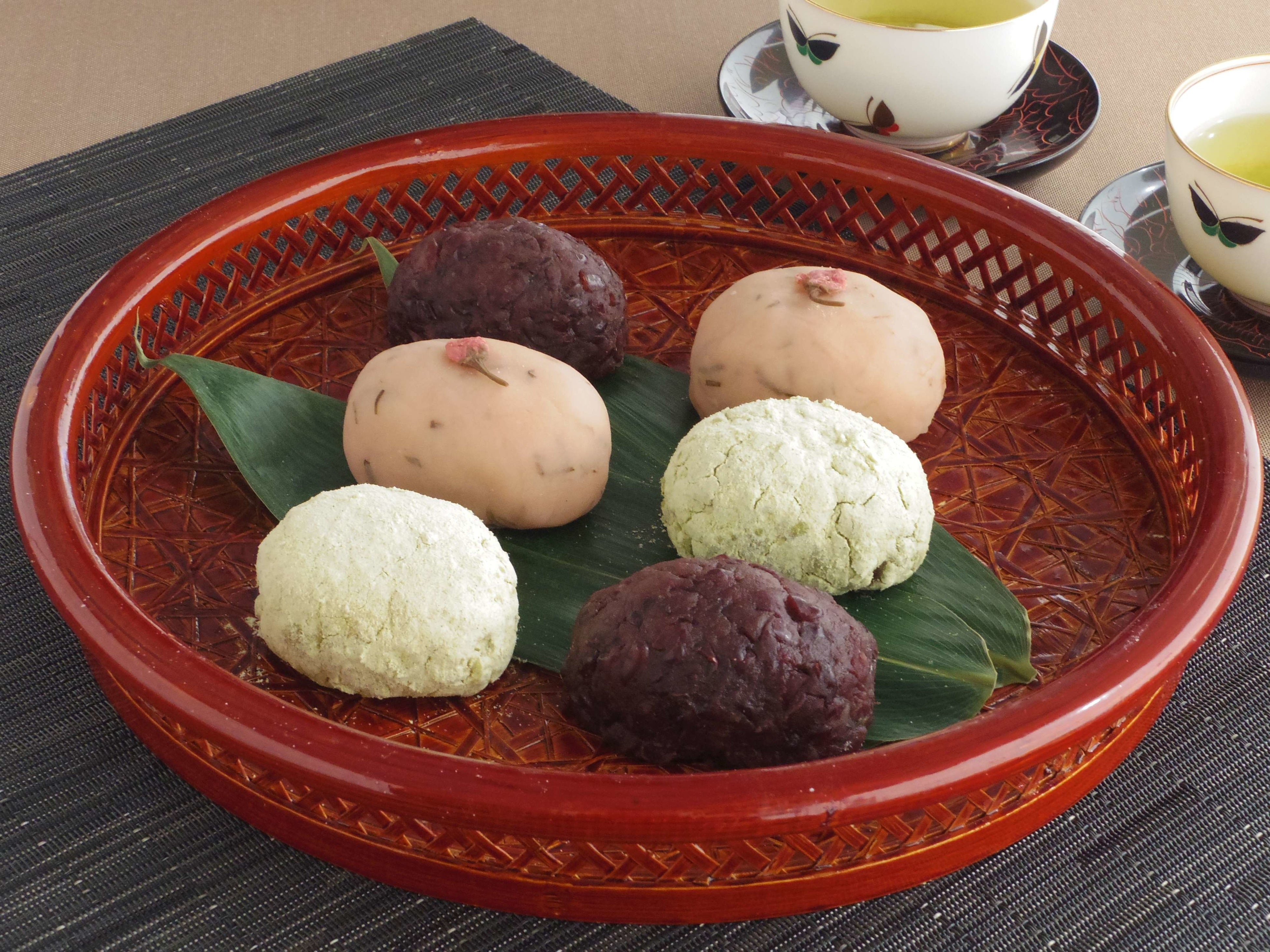 〇ぼたもち(粒あん、うぐいすきな粉、桜あん 各2個 持ち帰り)