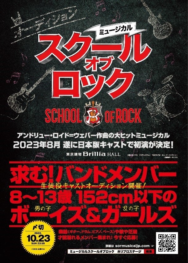 ミュージカル『スクールオブロック』2023年8月~9月日本初演決定!!メインキャスト生徒役( バンドメンバー)オーディション詳細も発表