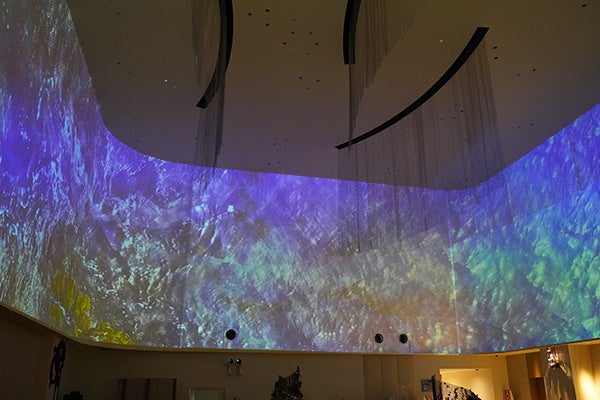 自然の水の流れや揺らぎを、円柱状に広がる360度の圧倒的な映像空間でゆったりとお楽しみください。