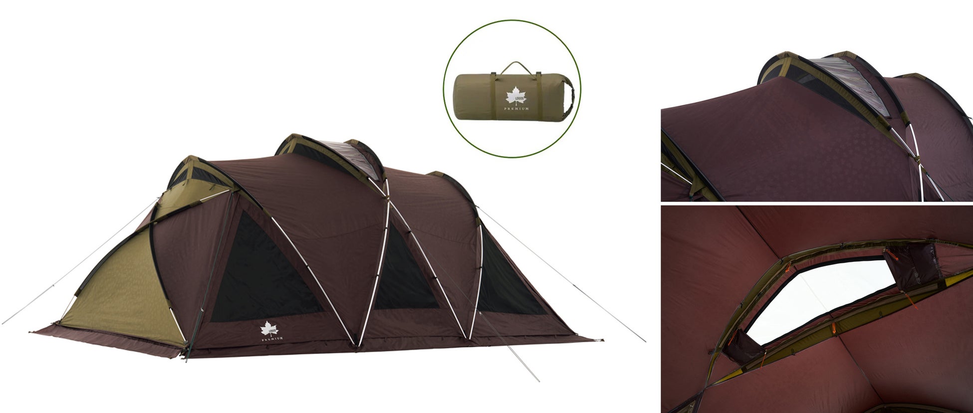 キャンプで星空観察!どんぐり形フレームの天窓付き2ルームテント「プレミアム エーコン PANEL X DOME L」新発売!