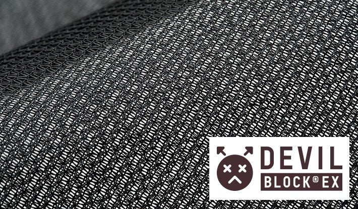 さらに、メッシュには、LOGOSが独自に開発した高機能「デビルブロックEX」を搭載しており、UV-CUT率、遮光率ともに約80%を実現しました。風を通しながら紫外線や害虫の侵入を防ぎます。