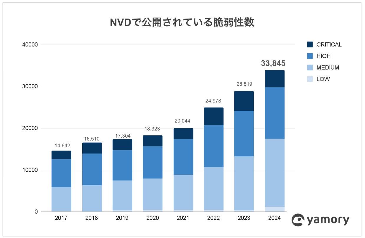 脆弱性件数は年々増加、全体の48%が深刻度の高いCriticalとHighの脆弱性