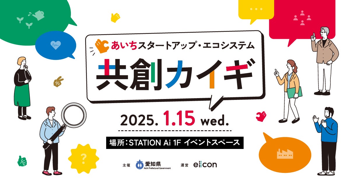 日本最大級のオープンイノベーションプラットフォーム「AUBA(アウバ)」を運営する株式会社eiicon(エイコン 本社所在地:東京都文京区後楽、代表取締役社長:中村 亜由子、以下「eiicon」)は、あいちスタートアップ・エコシステム形成の促進を目的に、「あいちスタートアップ・エコシステム 共創カイギ」を、2025年1月15日(水)、STATION Ai(名古屋・鶴舞)にて開催します。