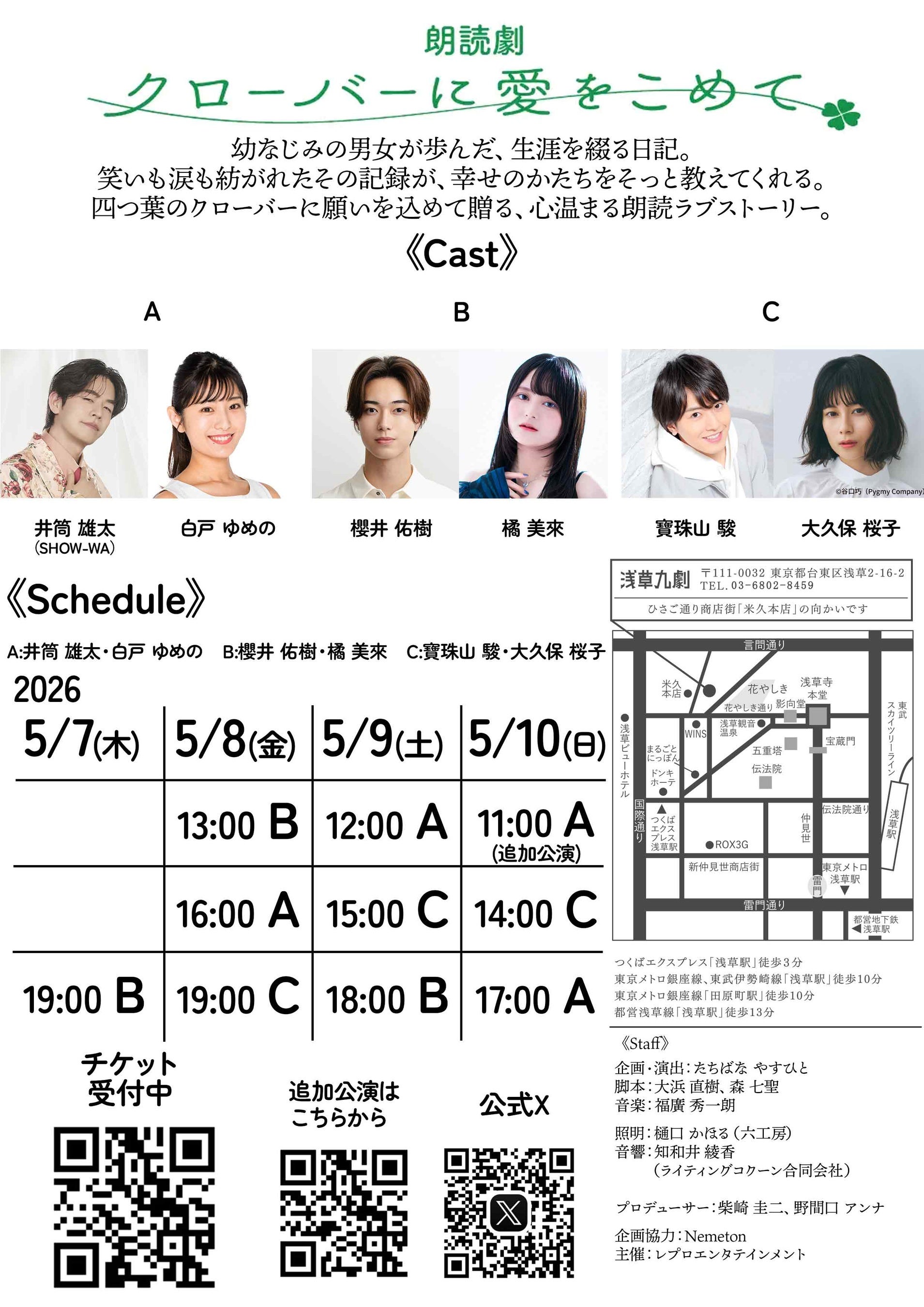 朗読劇『クローバーに愛をこめて』2026年5月に浅草九劇で上演決定‼