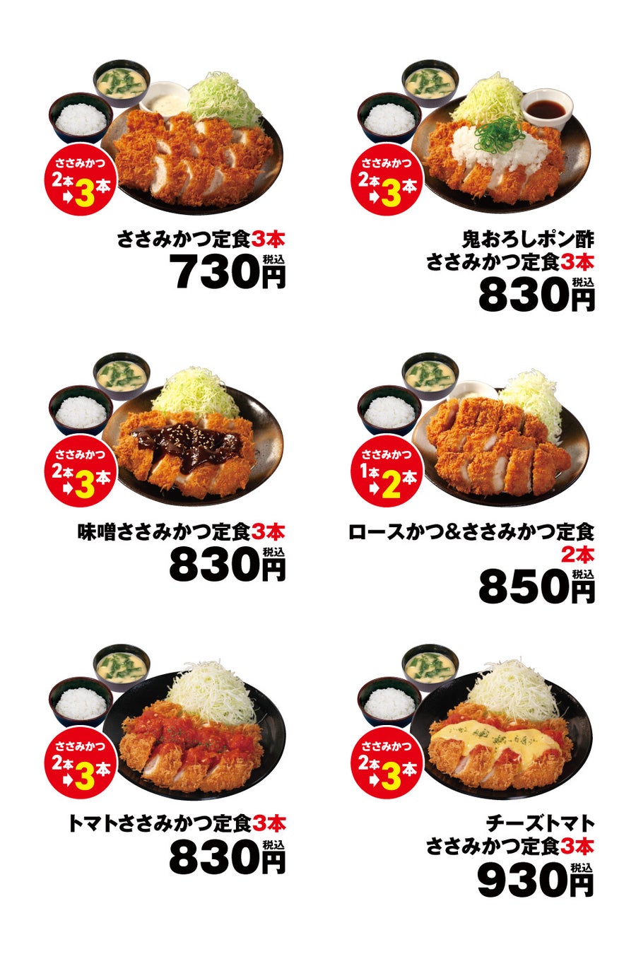 商品名 ささみかつ定食(通常2本→3本) 730円