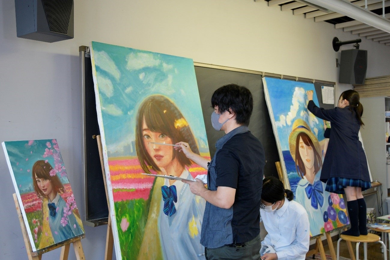 【エデュケーショナルネットワーク】“完売画家”中島健太氏と和洋九段女子美術部との共同制作、第5回目を実施