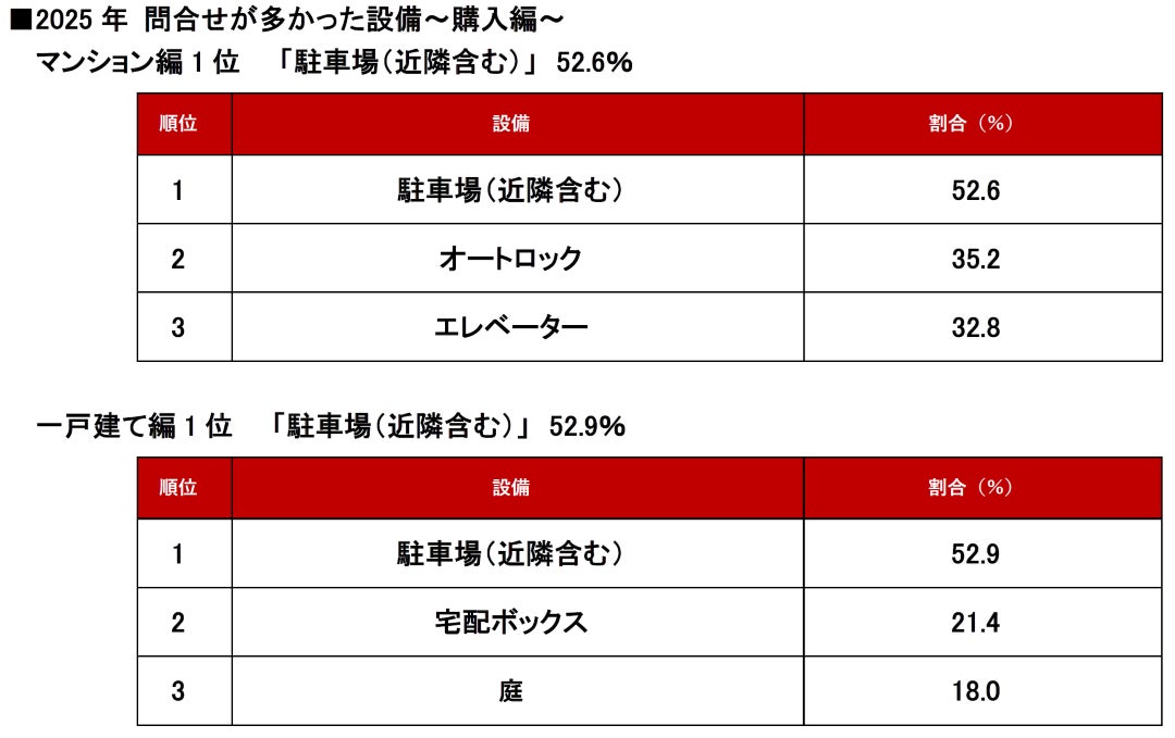 <不動産のプロに聞いた!「2025年 問合せが多かった設備~購入編~」ランキング調査結果>