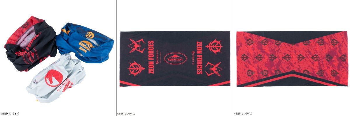 ストレッチ性のある素材で、バイクを乗る際や、運動の際にフェイスガードとして使用したり、首に巻いて日焼け防止として、様々な用途で活用頂けるネックガードです。『機動戦士ガンダム』よりシャアをイメージしたカラーリングのブラック、『機動戦士ガンダムUC』よりユニコーンガンダムをイメージしたホワイト、バンシィをイメージしたネイビーの3種展開。
