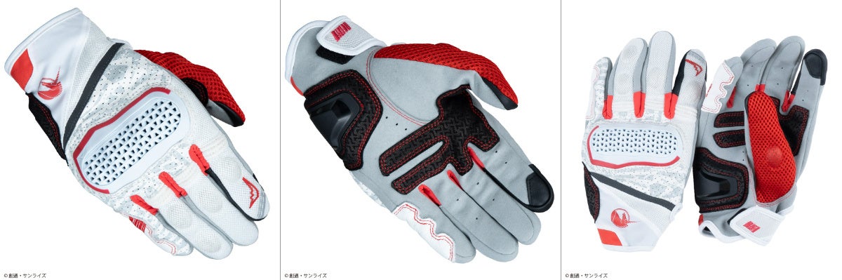 れており、独自開発のナックルプロテクターは通気性を確保した構造を持ち合わせます。掌下部には、樹脂製パームスライダーや、人差し指/親指にはスマフォタッチを備えています。ホワイトをメインに『機動戦士ガンダムUC』よりビスト財団をイメージしたカラーリングとデザインのユニコーンガンダムモデル、ブラックをメインにレッドで差し色を効かせたRED COMETモデルの2種展開です。