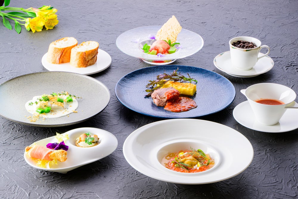 雲丹や平目、牛フィレ、メロンなど北海道の恵みを贅沢に盛り込み、華やかで繊細な一皿一皿に仕上げました。季節の味覚をフレンチで堪能する、特別なひとときをお楽しみください。