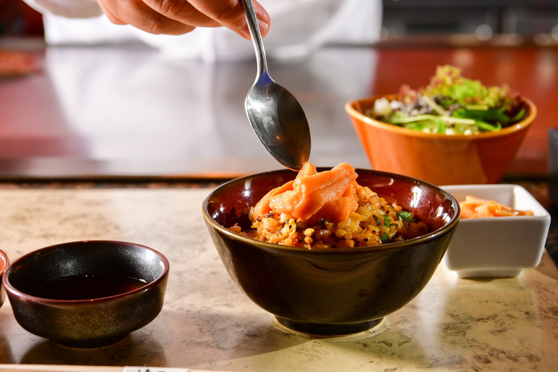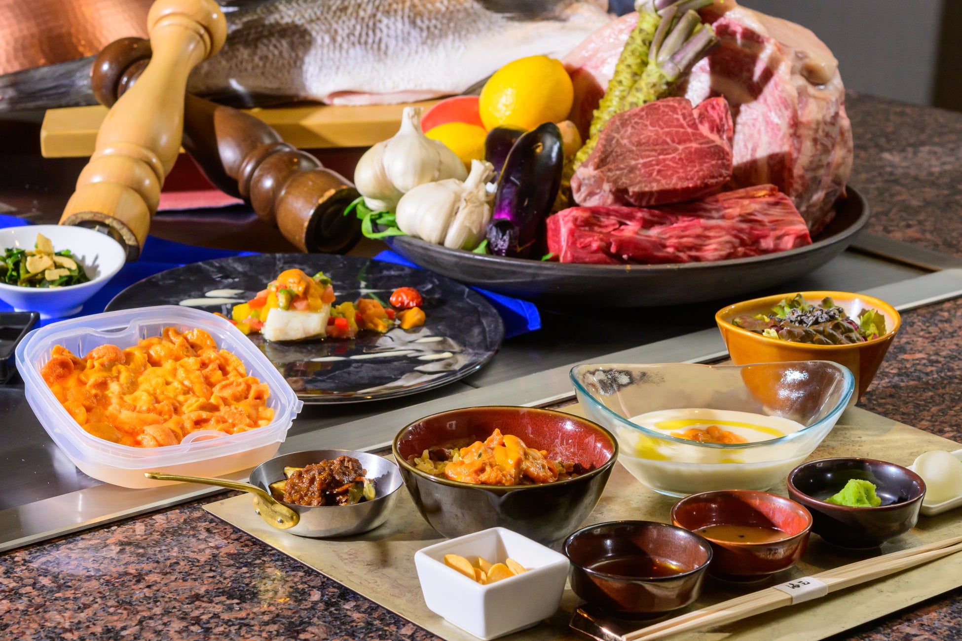 ■3階 鉄板焼「海王」では『生雲丹とびえい和牛の饗宴コース』をご提供いたします。