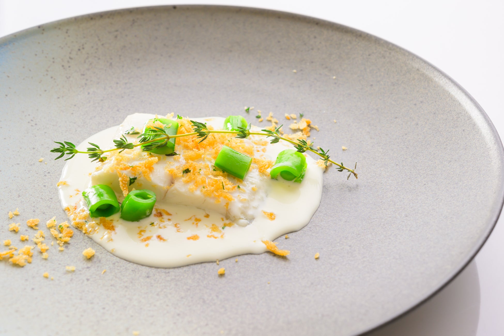北海道産の平目を、低温で丁寧に火入れすることで、ふっくらとした口当たりとしっとりした旨味を引き出しました。繊細な白身に濃厚な雲丹の甘みとクリームのまろやかさが寄り添い、調和のとれた一皿。