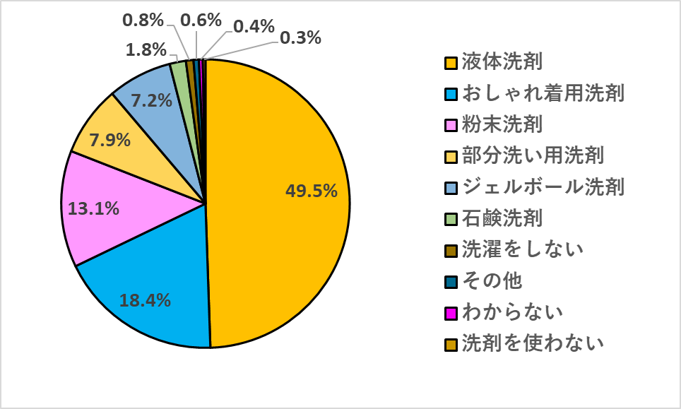 - 使用している洗剤の種類は「液体洗剤」が最多
