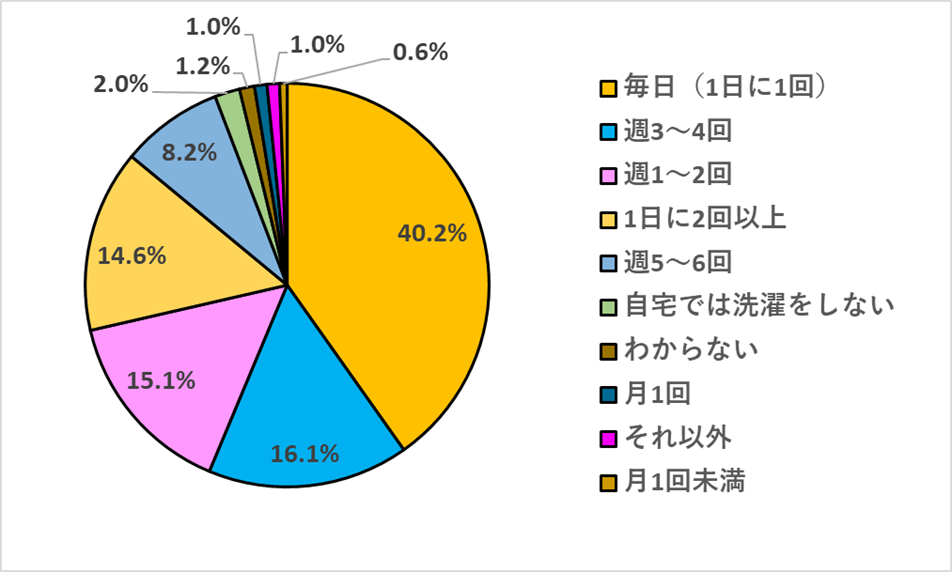 - 洗濯をする頻度は、「毎日(1日1回)」が最多