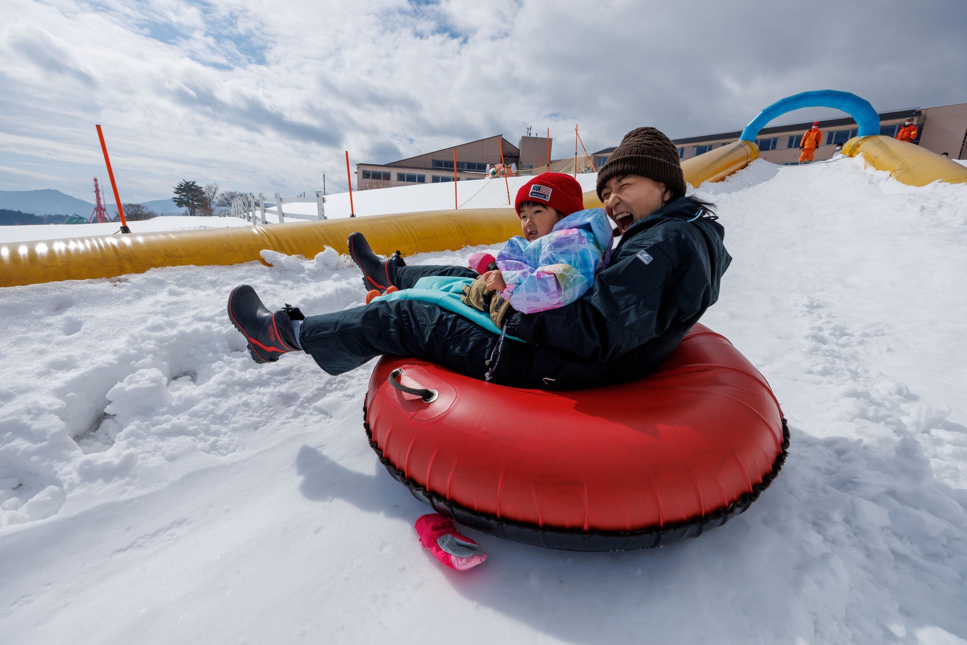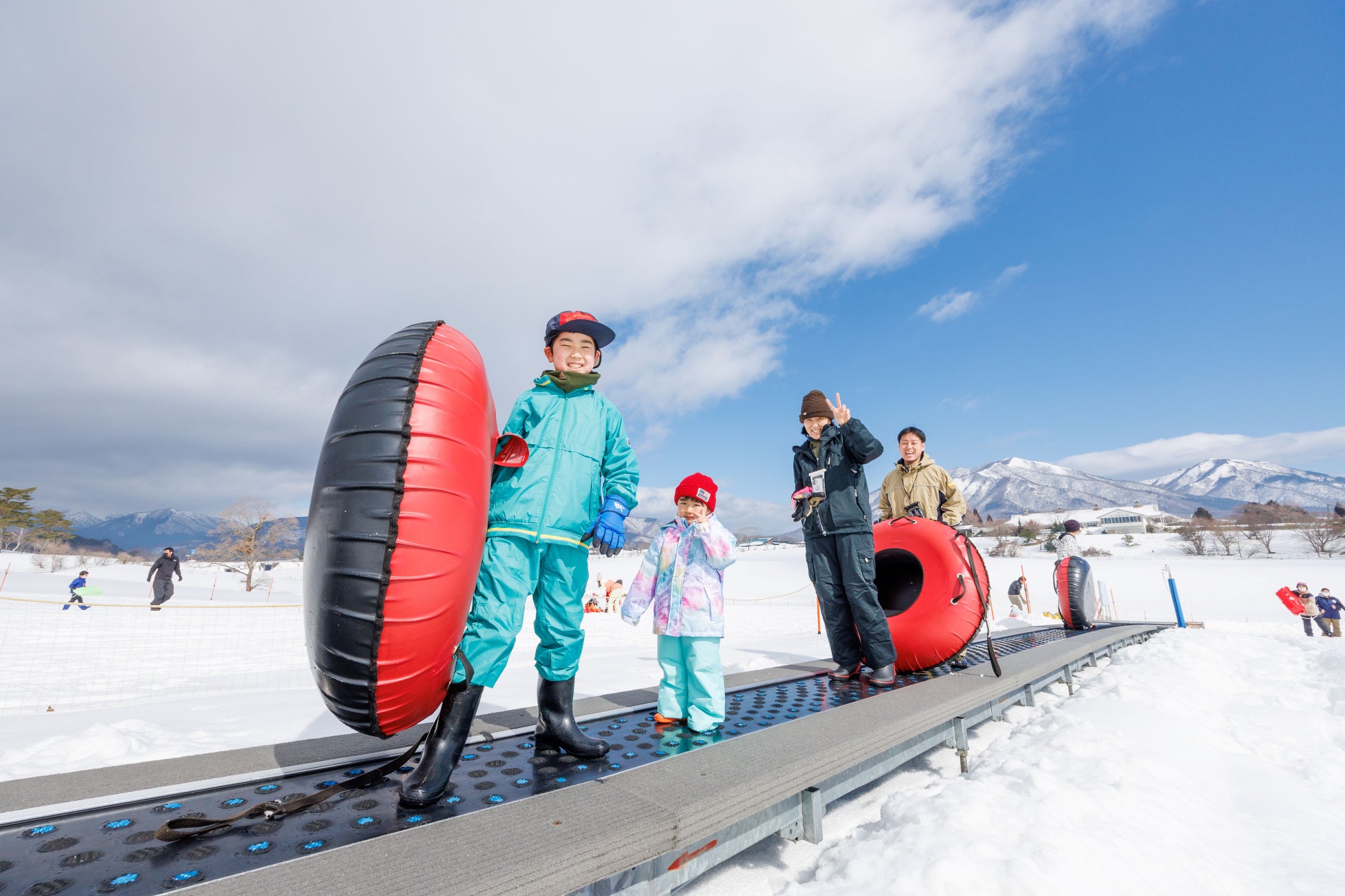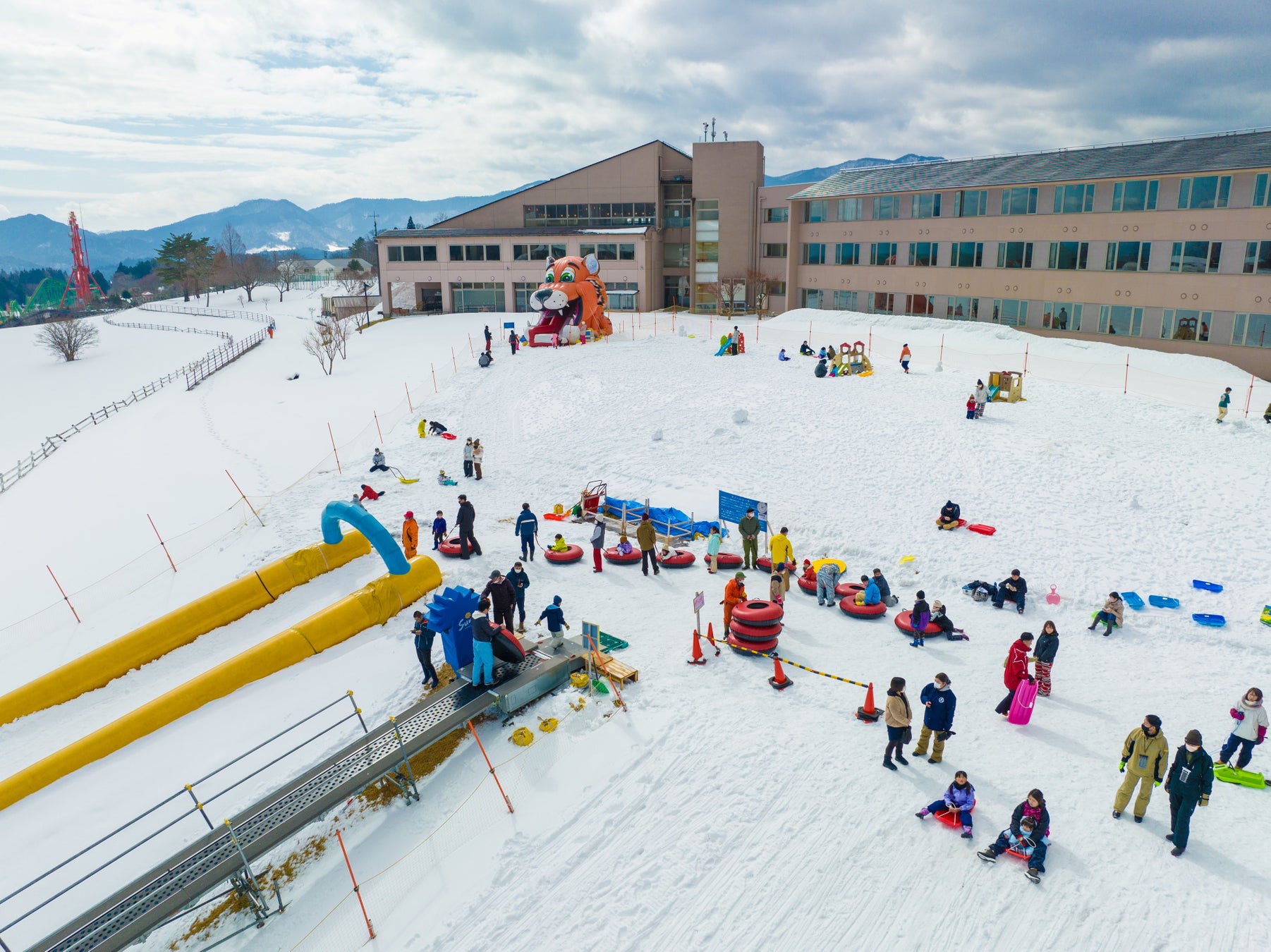 目の前に雪化粧の蒜山三座を望む休暇村蒜山高原(住所:岡山県真庭市蒜山上福田 総支配人:西村文博)では、ホテル目の前の広大なスペースに、スノーチューブや、タイガースライダー等のアトラクションが楽しめる西日本最大級の「ひるぜんキッズスノーパーク」を12月27日(土)より土日祝日限定でオープンします。ご宿泊のお客様には無料でご利用いただける他、日帰りのお客様には地元グルメが満載のランチビュッフェが楽しめます。